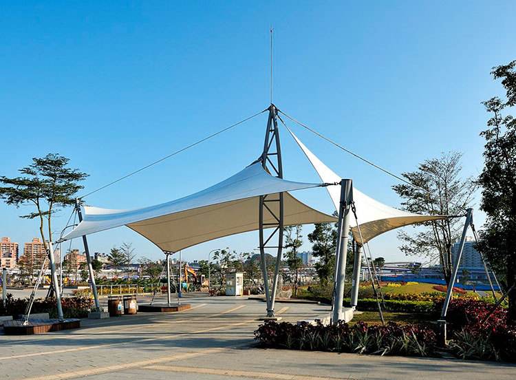 戶外膜結(jié)構(gòu)小品是景觀中的點(diǎn)睛之筆,一般體量較小、色彩單純,對(duì)空間起點(diǎn)綴作用。小品既具有實(shí)用功能,又具有精神功能。戶外膜結(jié)構(gòu)小品的出現(xiàn),提高了整個(gè)空間環(huán)境的藝術(shù)品質(zhì),改善了城市環(huán)境的景觀形象,給人們帶來美的享受。